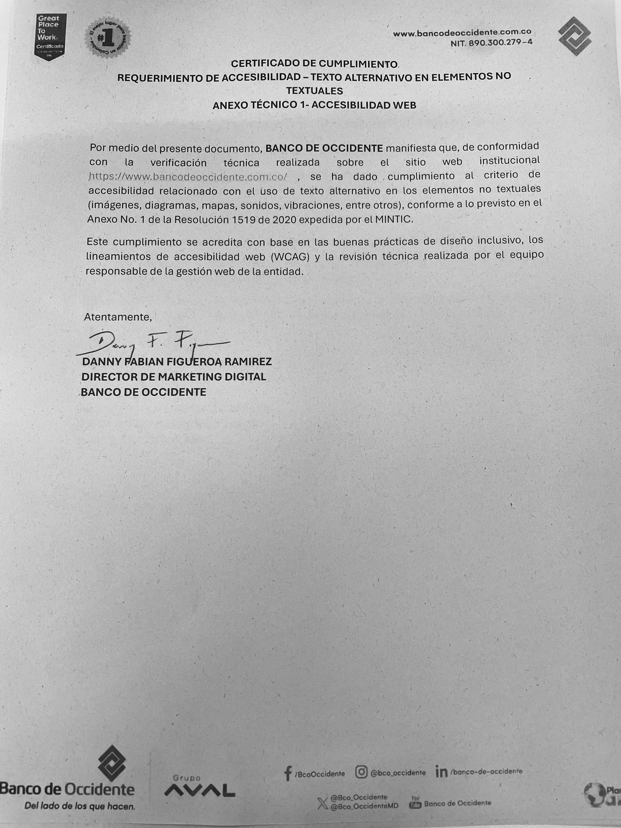 Banco de Occidente al ser una institución financiera se acoge a las disposiciones de custodia de información contempladas en el Estatuto Orgánico del Sistema Financiero. Consulta aquí