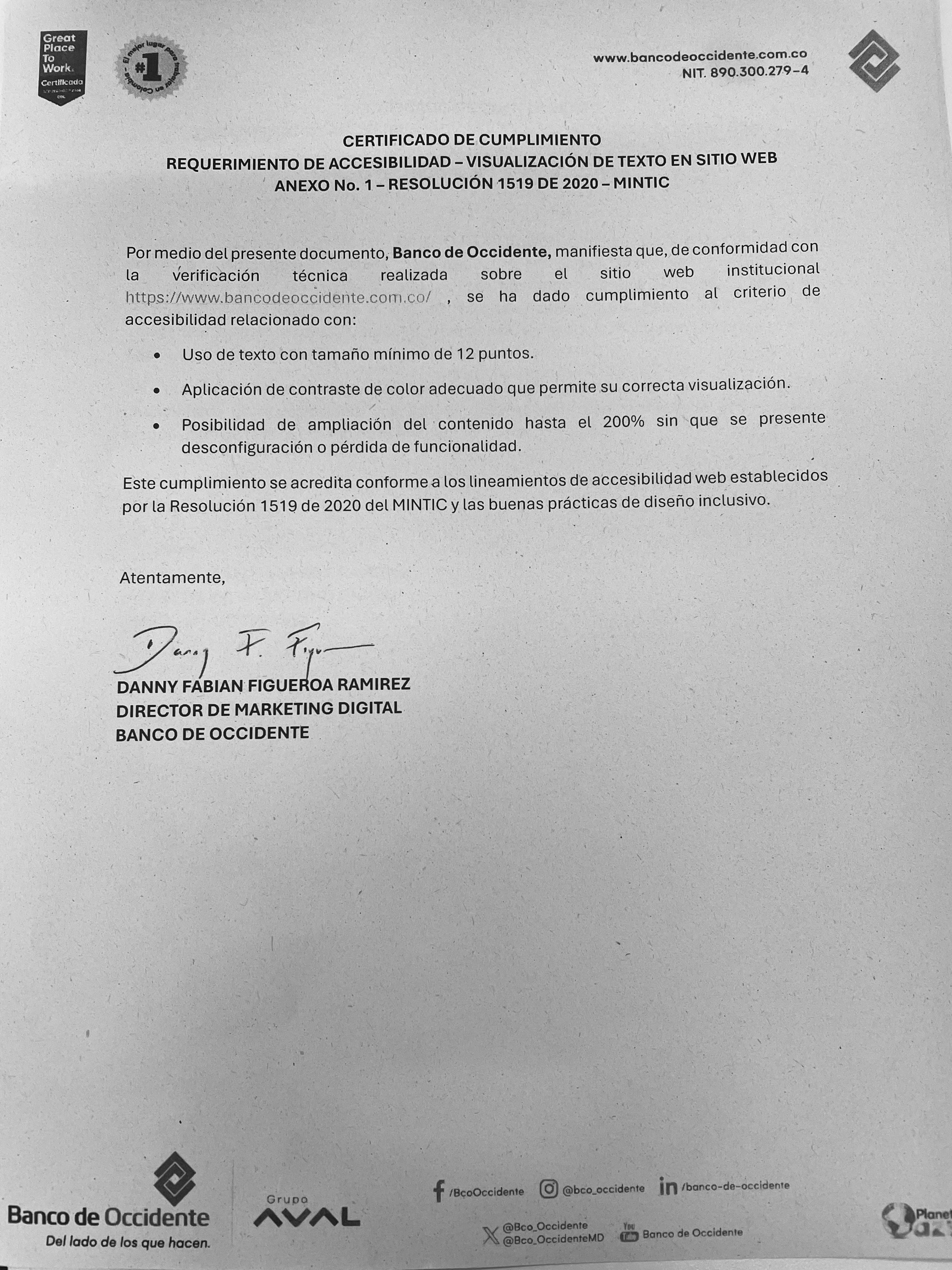 13. Certificado de cumplimiento Anexos 1 y 3 de la Resolución 1519 de 2020